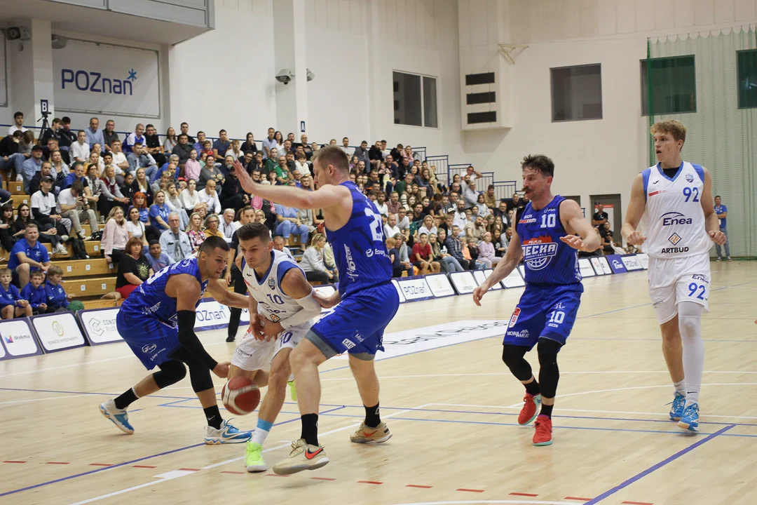 Pierwsze minuty spotkania były dla poznaniaków bardzo udane. Świetnie mecz rozpoczął Jan Jakubiak, owocowało też doświadczenie nowego kapitana Enei Basketu, Huberta Pabiana. Gospodarze prowadzili 18:11 i .. nagle coś się zacięło. Koszykarze z Pelplina rzucili 11 punktów, tracąc tylko 2, i to oni wygrali pierwsza kwartą. W drugiej, po akcjach Pułkotyckiego i Andrzejewskiego Basket zniwelował straty do jednego punktu, ale z każda akcją widać było, że Decka łapie wiatr w żagle. Raz za razem punktowali Mariusz Konopatzki i Patryk Kędel, z którymi zawodnicy Enei mieli najwięcej problemów. Do przerwy goście wygrywali 56:43.