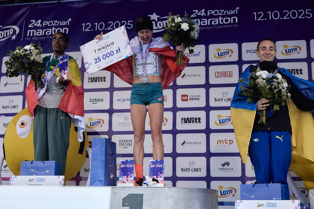 24. edycja Poznań Maratonu to też wielki sukces lublinianki - Izabeli Paszkiewicz. Jej wynik sprawił, że Polka wreszcie po sześciu latach zameldowała się na pierwszym miejscu tej imprezy. Ostatni raz zwycięstwo w Maratonie odnotowała w 2019 roku poznanianka - Monika Stefanowicz. Paszkiewicz dobiegła na metę z czasem 2 godzin 30 minut i 5 sekund, wyprzedzając Etiopkę Workie Abeja Aregu. Ta zawodniczka zajęła drugie miejsce, meldując się na finiszu 19 sekund po Polce. Brązowy medal padł łupem Ukrainki Viktorii Kalizuhny, która miała czas 2 godzin 32 minut i 18 sekund.Niewiele zabrakło, by na podium zameldowała się inna z Polek - Monika Brzozowska. Zawodniczka z Czerwonaka była jednak minimalnie wolniejsza od swojej najbliższej rywalki. Ostatecznie zajęła czwarte miejsce z wynikiem 2 godzin 40 minut i 25 sekund.