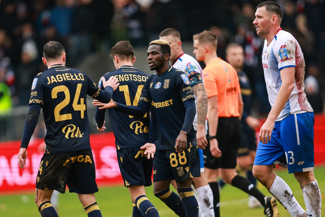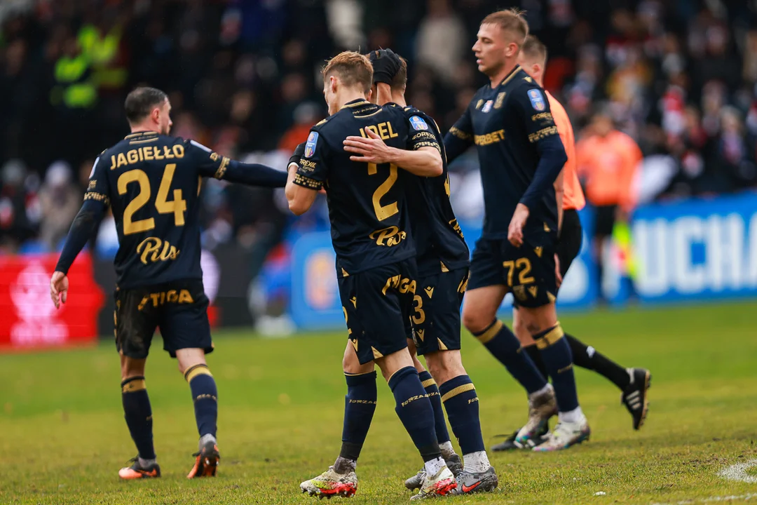 Lech jednak zdołał podnieść prowadzenie w 35. minucie, kiedy to po zamieszaniu w polu karnym do siatki trafił Joel Pereira. Wynik 2:0 dla Kolejorza utrzymał się do przerwy, a gospodarze zupełnie nie mieli pomysłu na stworzenie jakiegokolwiek zagrożenia. Najgroźniejszą akcję udało się im przeprowadzić dopiero w 45. minucie, kiedy to Wojda stanął oko w oko z Bartoszem Mrozkiem po kapitalnym podaniu. Ostatecznie golkiper popisał się znakomitą interwencją.