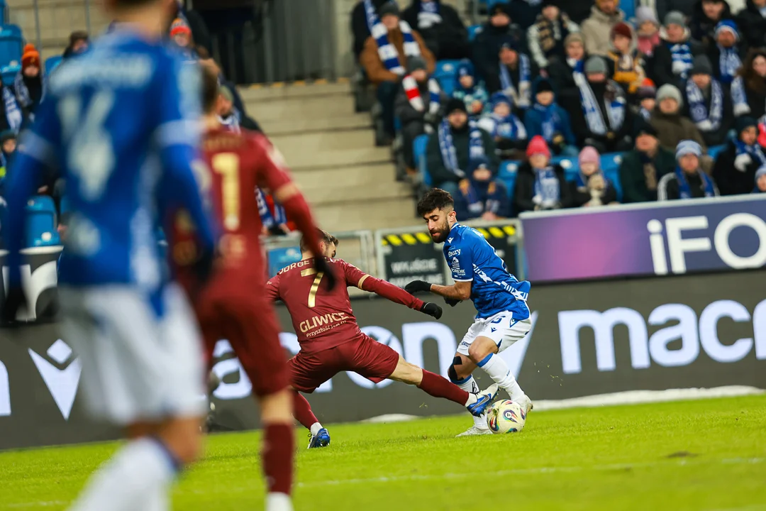Pressing mistrzów Polski nie pozwalał jednak przyjezdnym na zbyt wiele. Kolejorz świetnie wyglądał w fazie defensywnej skutecznie zamykając swoim rywalom przestrzenie do gry. Zespół Nielsa Frederiksena w znakomitym stylu pokazywał, co to znaczy bronić drużynowo na wysokiej intensywności. Piast miał duże problemy z opuszczeniem własnej połowy nawet za pomocą dalekich podań. Piłkarze Kolejorza byli dla Gliwiczan niczym plaster, ale w sytuacjach krytycznych pod polem karnym Bartosza Mrozka również wykazywali się czujnością. Prowadzenie 2:0 po pierwszej połowie było w pełni zasłużone.