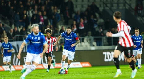 45' Kristoffer Velde płaskim uderzeniem przy bliższym słupku wyprowadził Lecha Poznan na prowadzenie