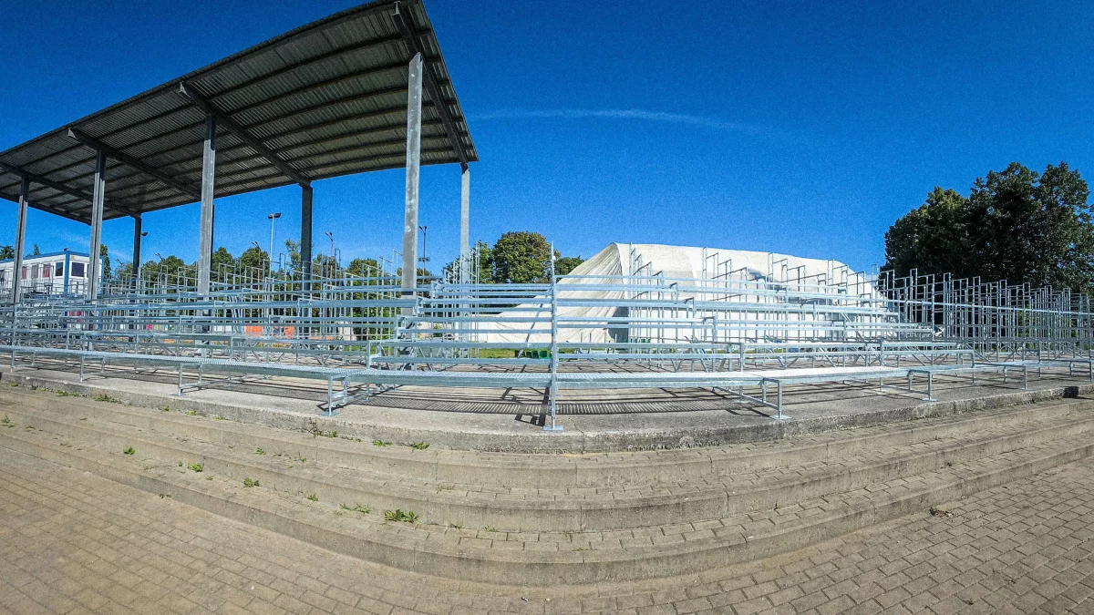 Pomieści ona ponad 720 widzów. Miejsca na niej będą mogli zajmować nie tylko kibice, ale również dziennikarze. Ponadto zostanie ona wyposażona w sektor VIP. Część trybuny będzie zadaszona, a jej montaż powinien potrwać do końca tygodnia.