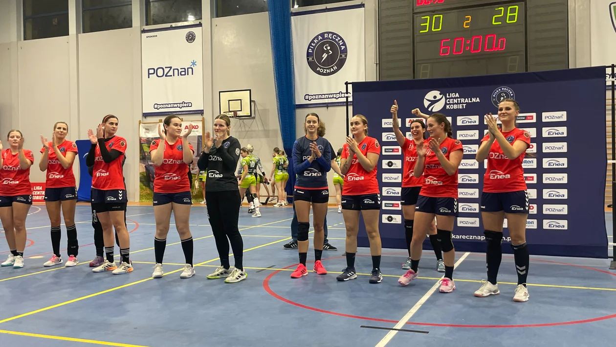 Sobotnie spotkanie planowo miało rozpocząć się o godzinie 17:00. W wyniku problemów technicznych z halą przy ul. Newtona 2 w Poznaniu (zbierająca się woda na parkiecie) mecz opóźnił się o kwadrans. W pierwszej połowie z nieco lepszej strony zaprezentowały się przyjezdne, które na przerwę schodziły z dwubramkową zaliczką 16:14. W zespole gospodarzy brylowała natomiast Olesia Parandii, która raz za razem trafiała do siatki, utrzymując Eneę w grze.